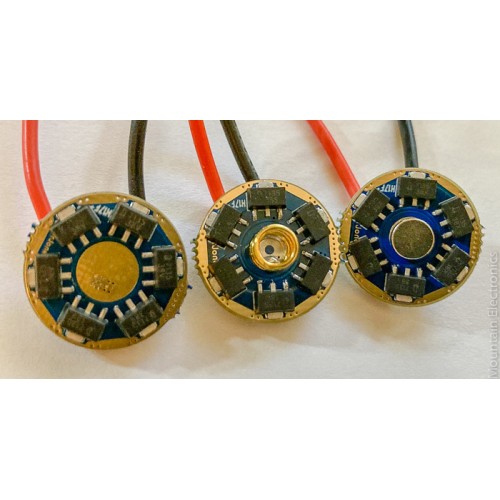 This is a custom driver board (H17F) with an enhanced version of lucidrv with some additional features. It has a diameter of 17mm with components on both sides, and provides a current of 3.0A (8*AMC7125) plus a direct drive FET for turbo modes.