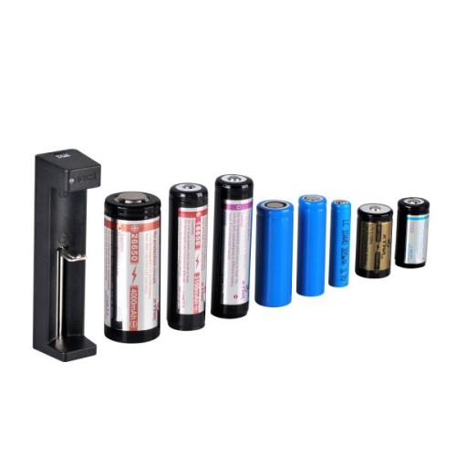 • Works with: 10440 (but too high of a charge current to be ideal), 14500, 14650, 16340, 17500, 17670, 18350, 18500, 18650, 25500, 26650 lithium ion batteries.
