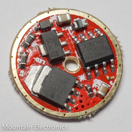 This driver gives you the best of both worlds: an ultra low resistance FET and a single 7135 linear regulator. The 7135 gives an ultra-efficient moonlight and low mode, with the FET providing near-direct-drive performance (limited mostly by your battery, LED, and connections) on the higher power levels.